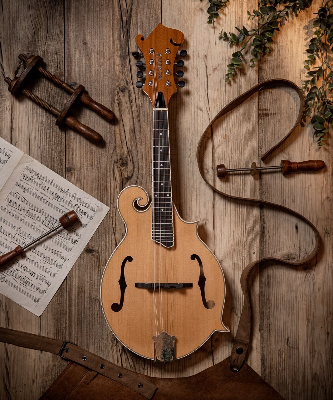 This is a beautifully crafted, impeccably balanced classic F-style mandolin, with the distinctive swirling scroll at the top and the two extra points down the other side.